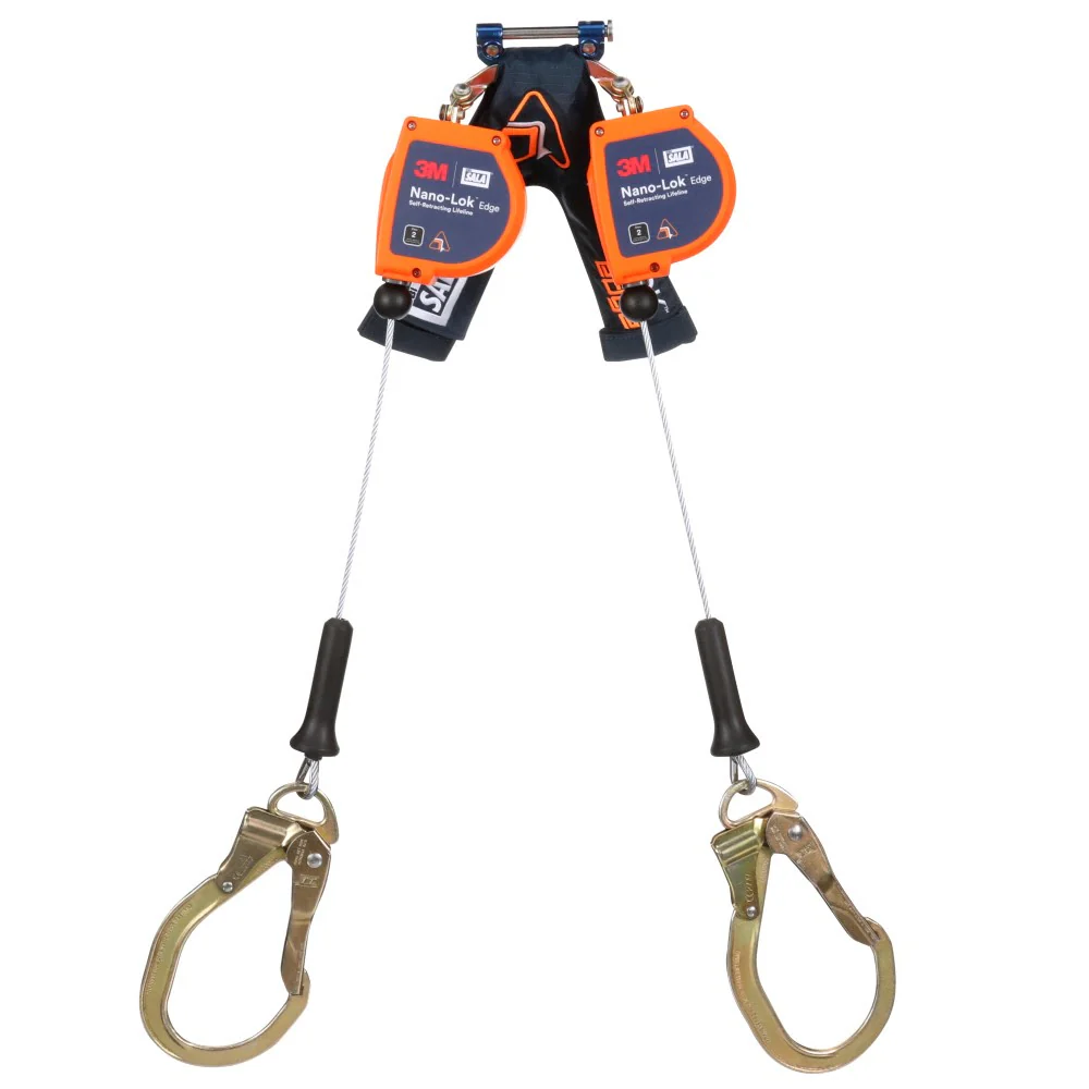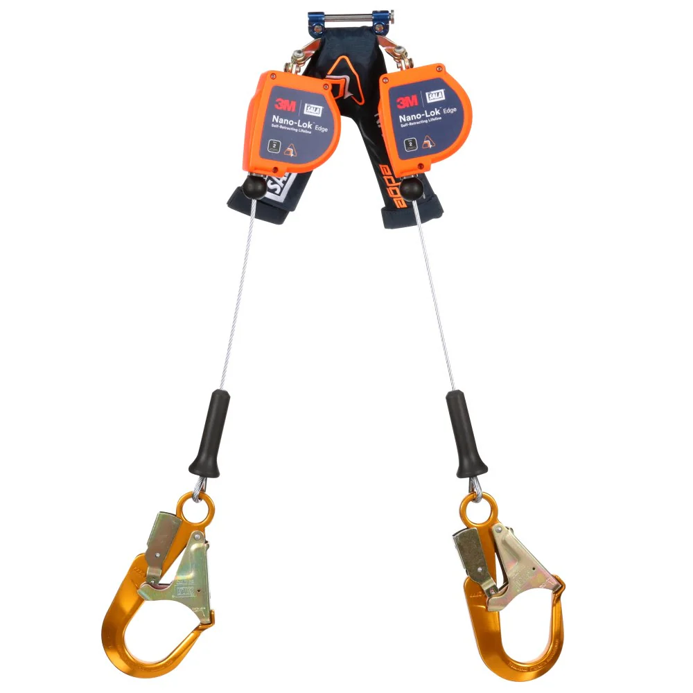 DBI Sala 3500276 Nano-Lok Edge Twin-Leg Personal Self Retracting Lifeline, Cable, Steel Rebar Lock Hook, 8 ft, Class 2, ANSI