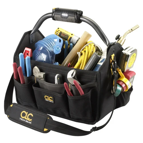 Custom Leather Craft L234 Tech Gear Led Lighted Handle 15" Open Top Tool Carrier