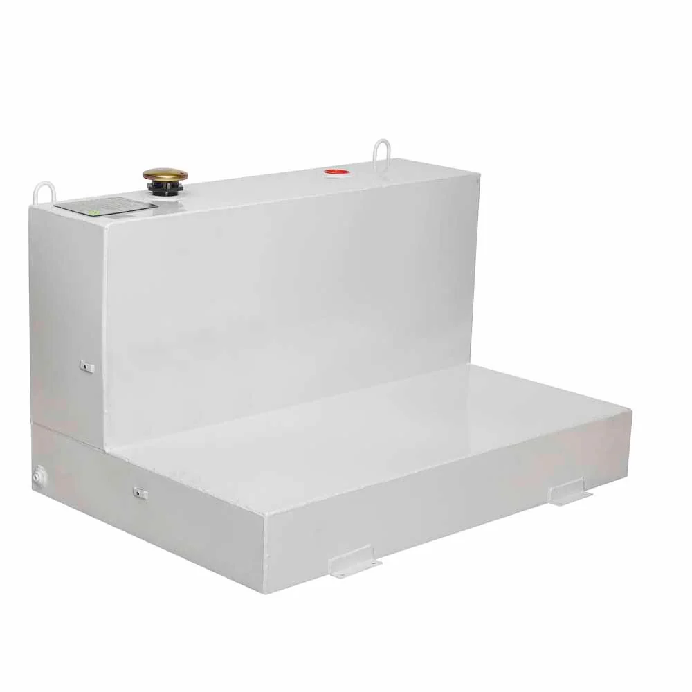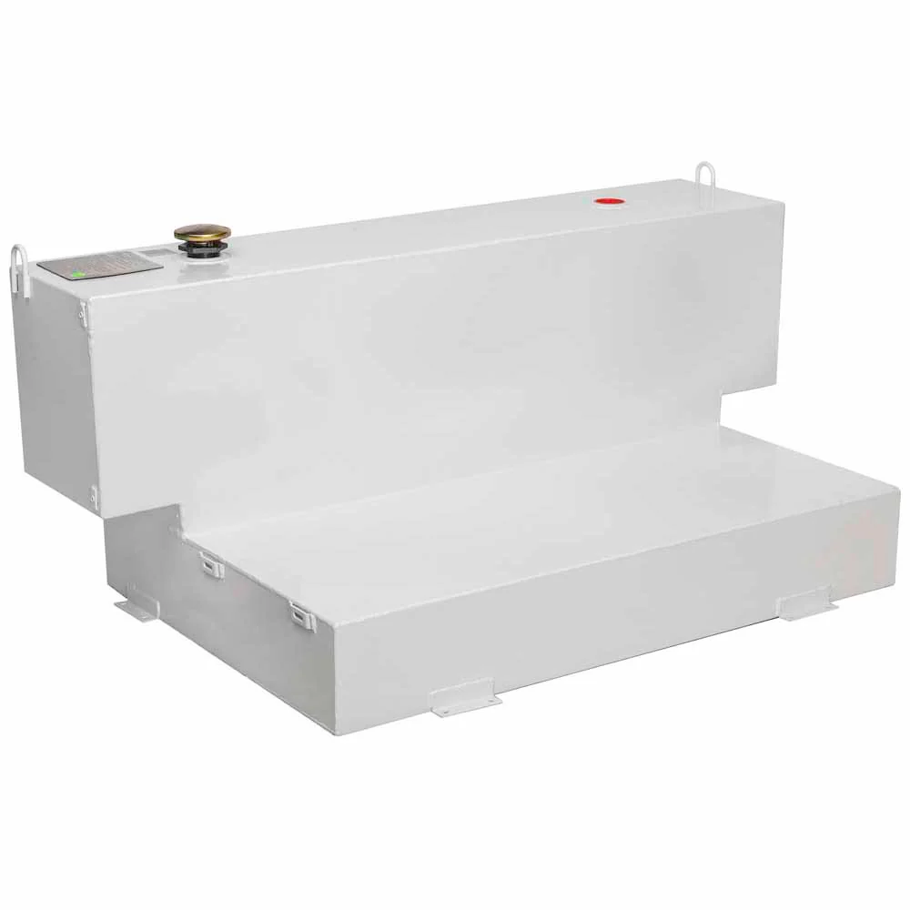 JOBOX 487000 88 Gallon White Low-Profile L-Shaped Steel Liquid Transfer Tank for Trucks