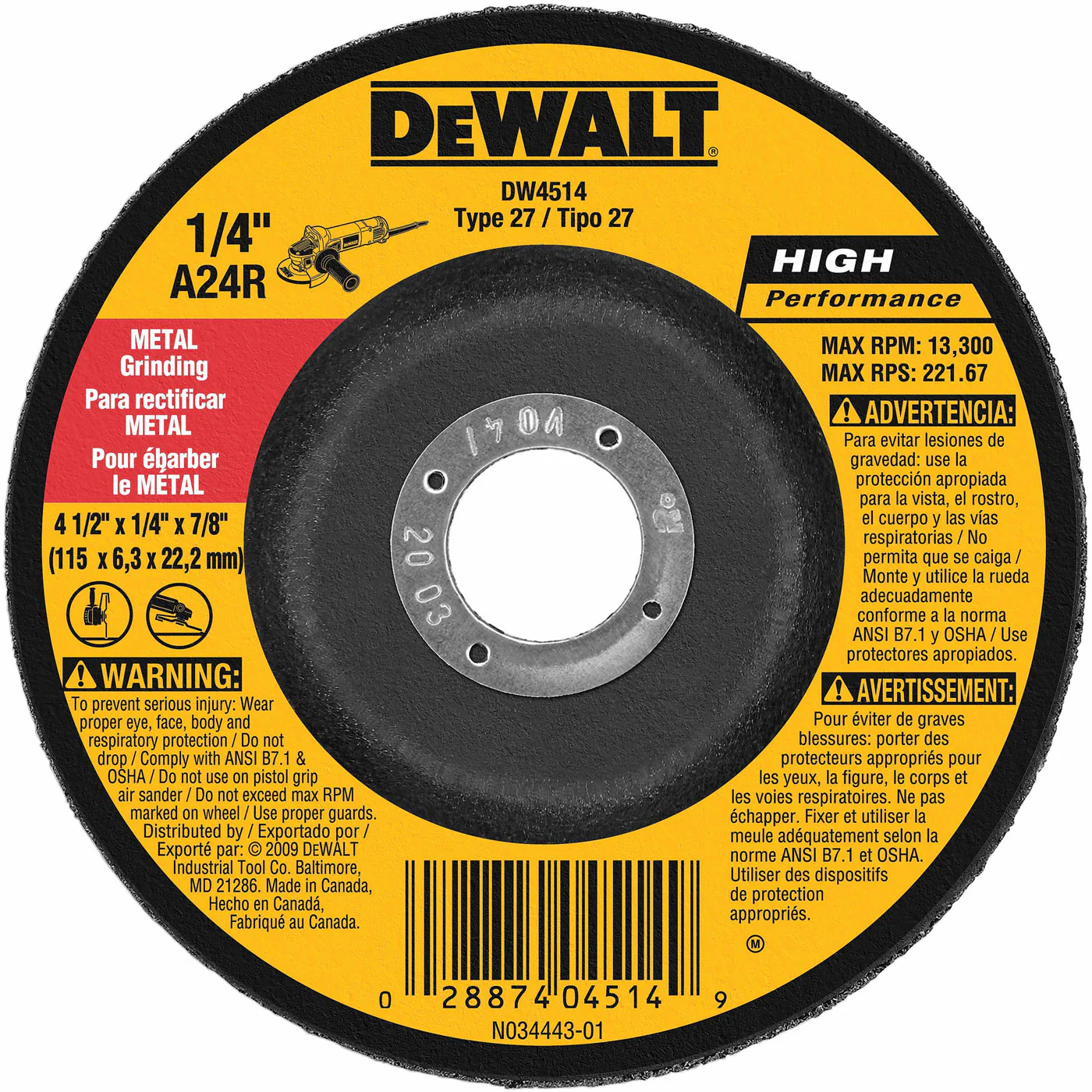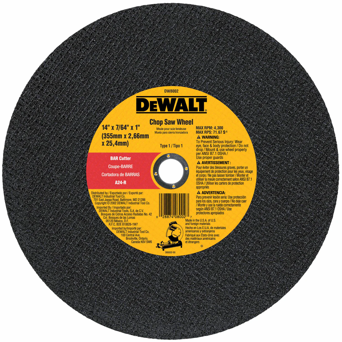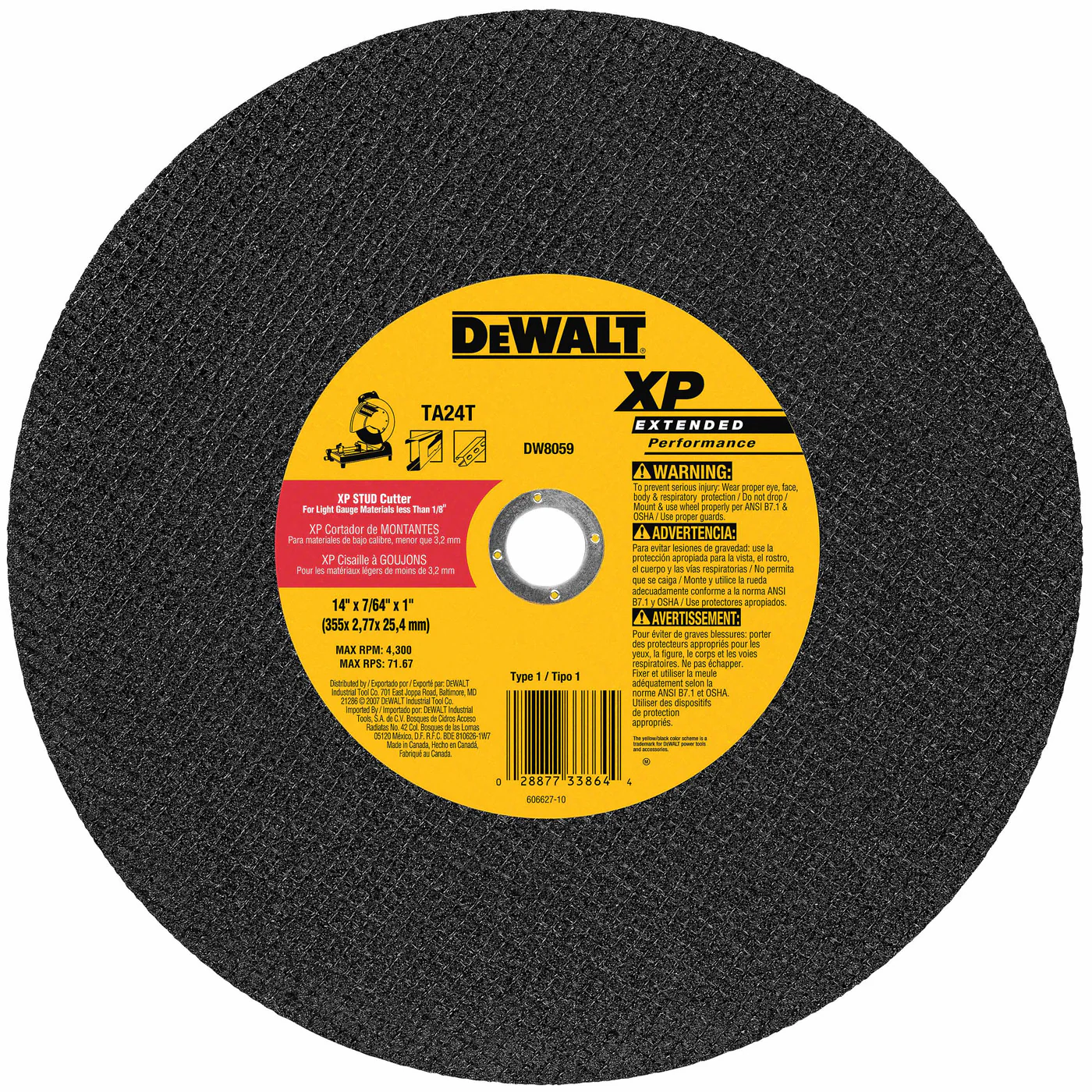 DeWalt DW8059 14" x 7/64" x 1" Extended Performance Stud Cutting High Speed Cut-Off Wheel