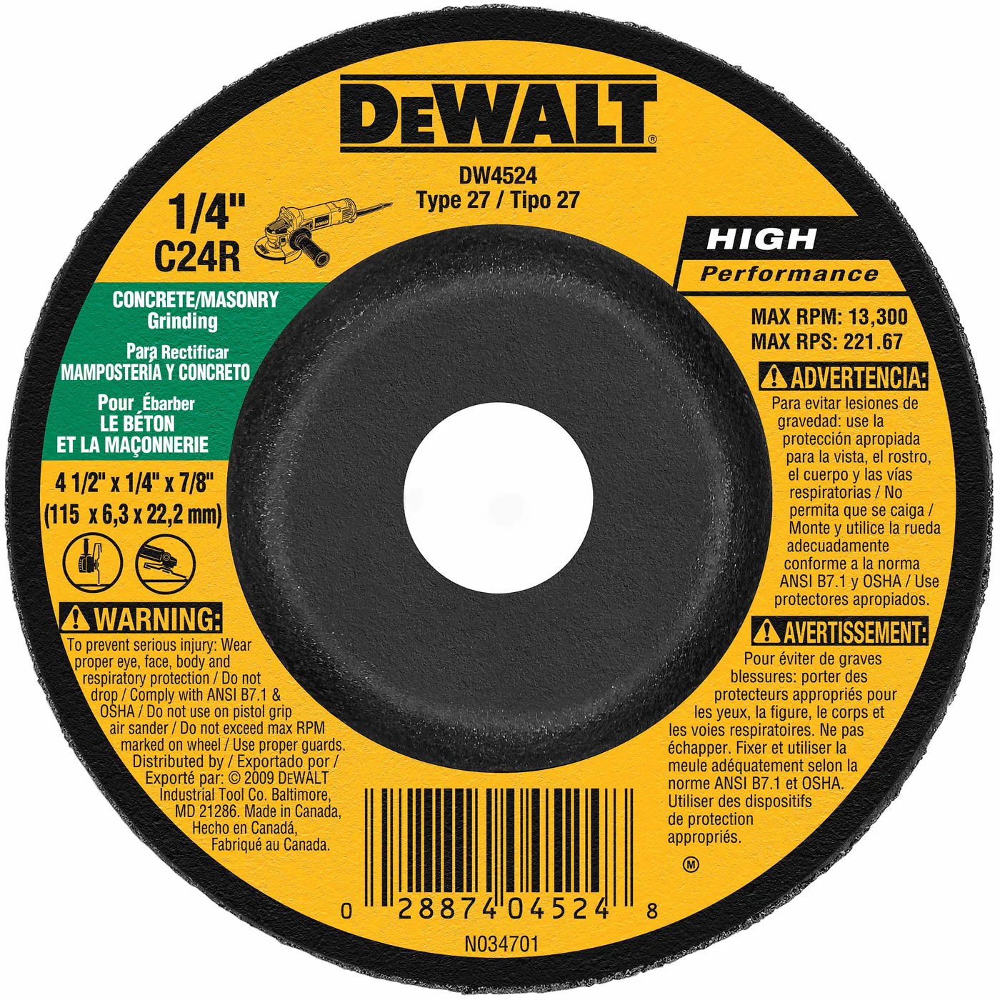 DeWalt DW8420 4" x .045" x 5/8" Thin Cutting Wheel Type 27 Depressed Center Wheel