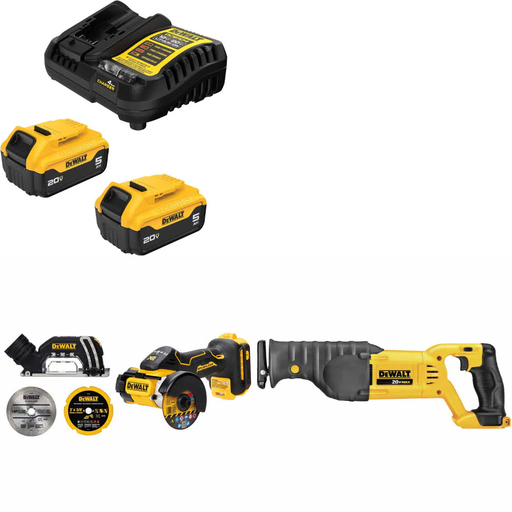 DeWalt DCB205-2C 20V Starter Kit W/ FREE DCS438B 20V Cut-Off Tool & Recip Saw