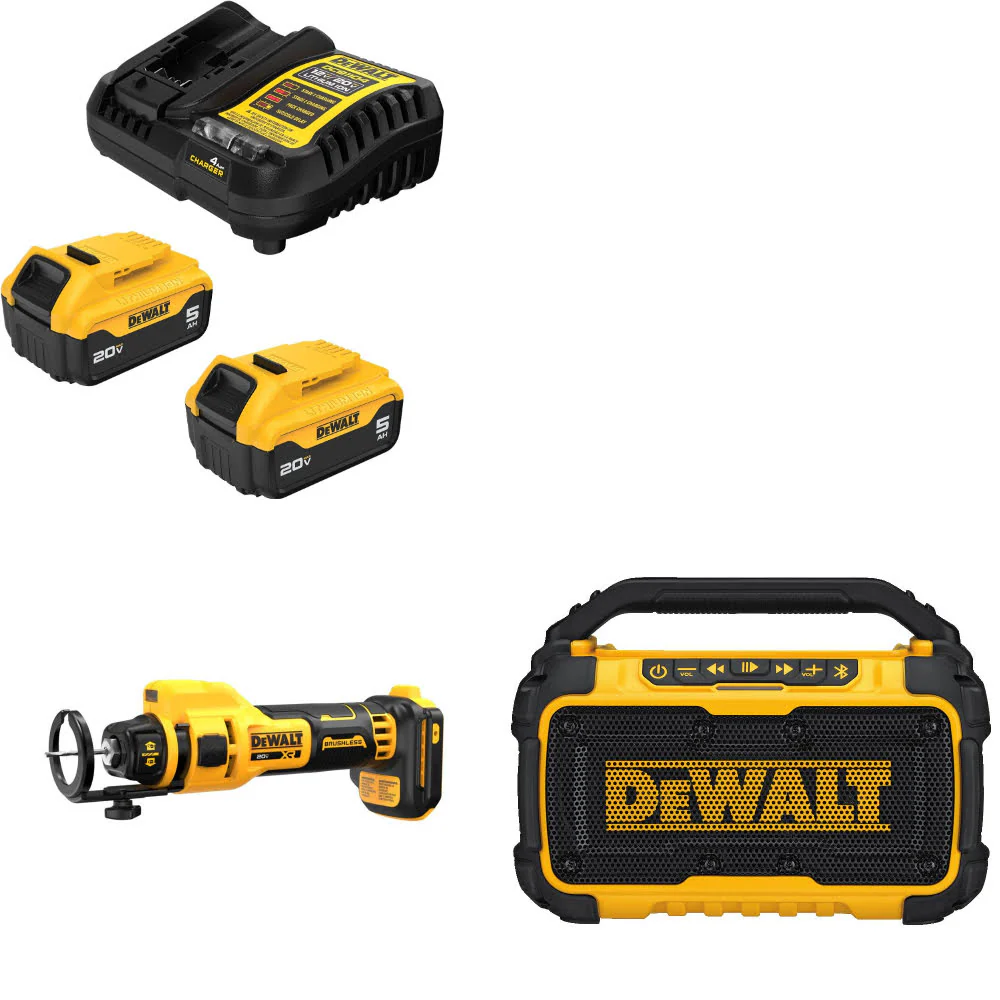 DeWalt DCB205-2C 20V Max Starter Kit W/ DCE555B 20V Max Cut-Out Tool & Speaker