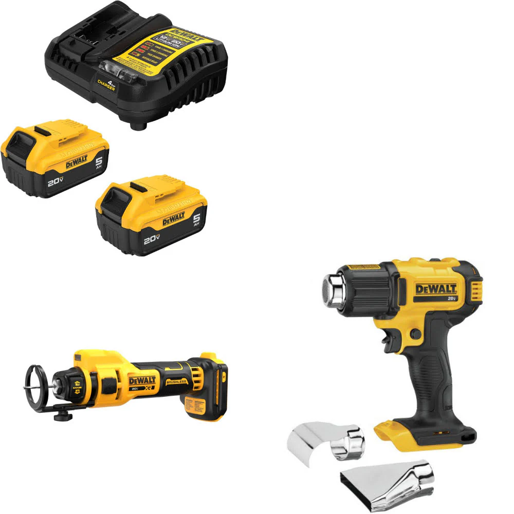 DeWalt DCB205-2C 20V Max Starter Kit W/ DCE555B 20V Cut-Out Tool & Heat Gun