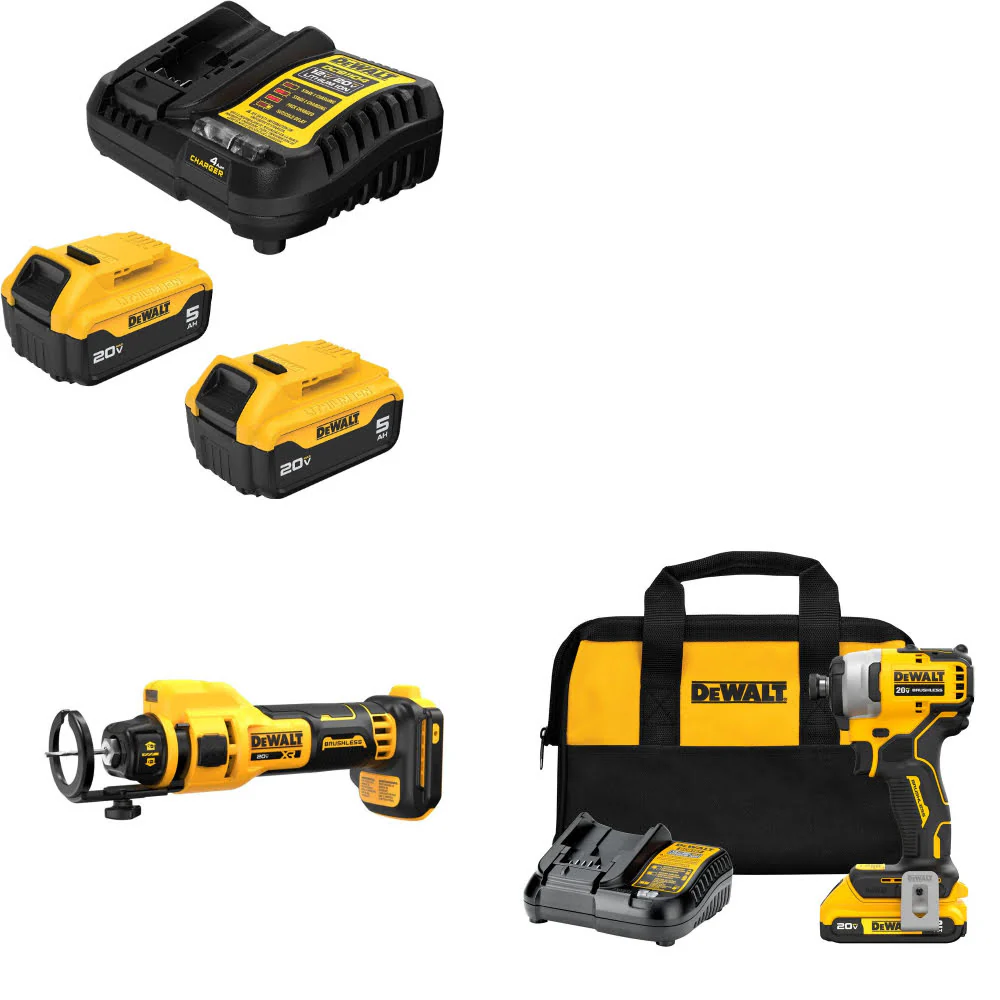 DeWalt DCB205-2C 20V Starter Kit W/ DCE555B 20V Cut-Out Tool & Impact Driver Kit