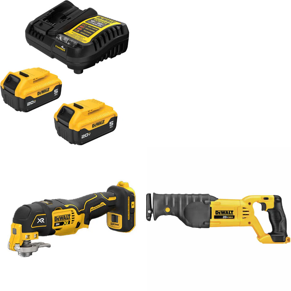 DeWalt DCB205-2C 20V 5Ah Starter Kit W/ FREE DCS356B 20V Multi-Tool & Recip Saw