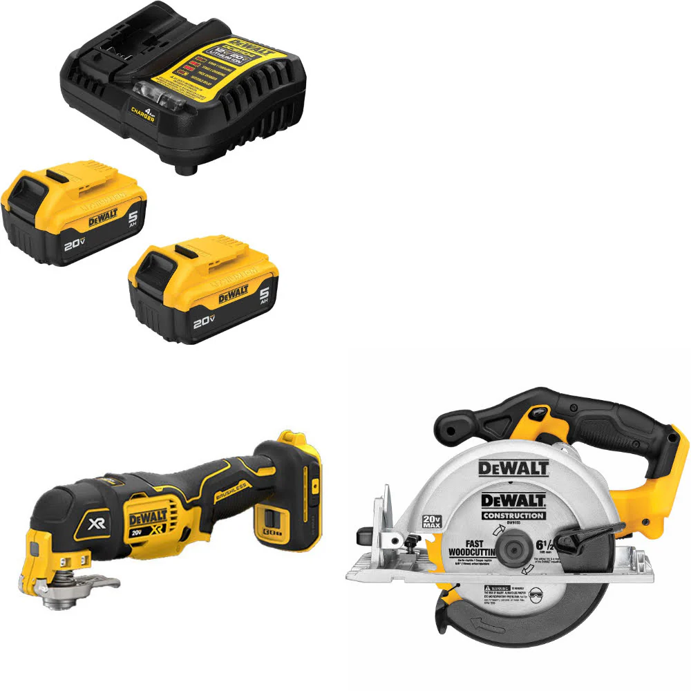 DeWalt DCB205-2C 20V 5Ah Starter Kit W/ FREE DCS356B 20V Multi-Tool & Circ Saw