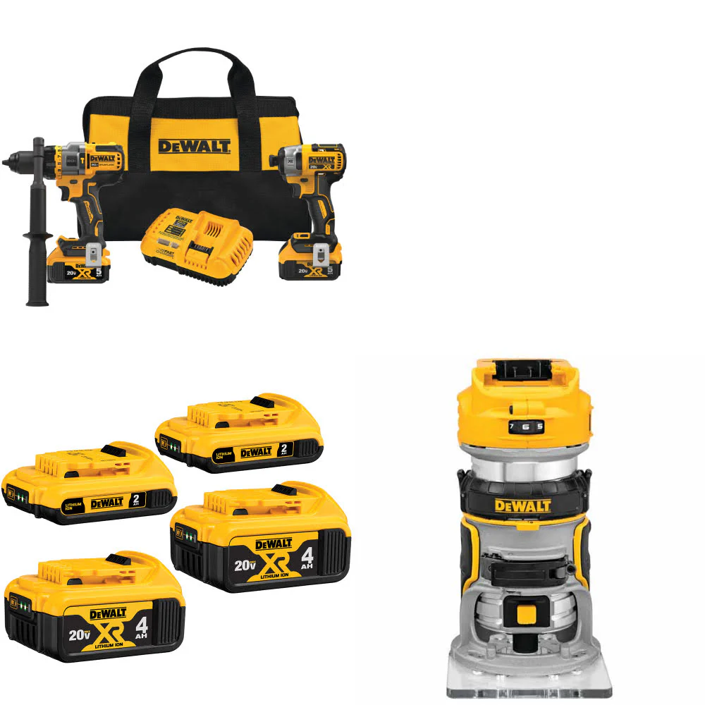 DeWalt DCK2100P2 20V 2-Tool Combo Kit W/ DCB324-4 20V Battery-4Pk & FREE Router