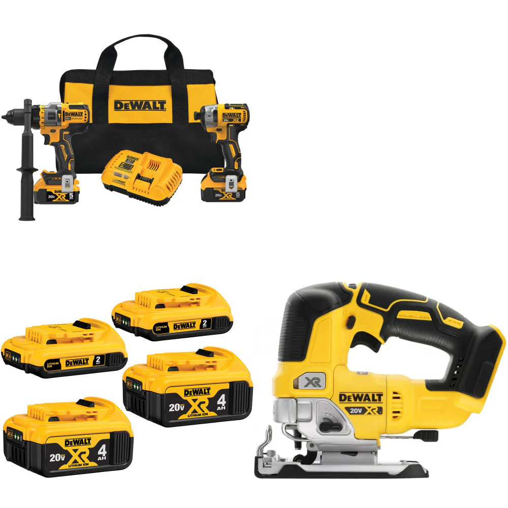 DeWalt DCK2100P2 20V 2-Tool Combo Kit W/ DCB324-4 20V Battery-4Pk & FREE Jig Saw