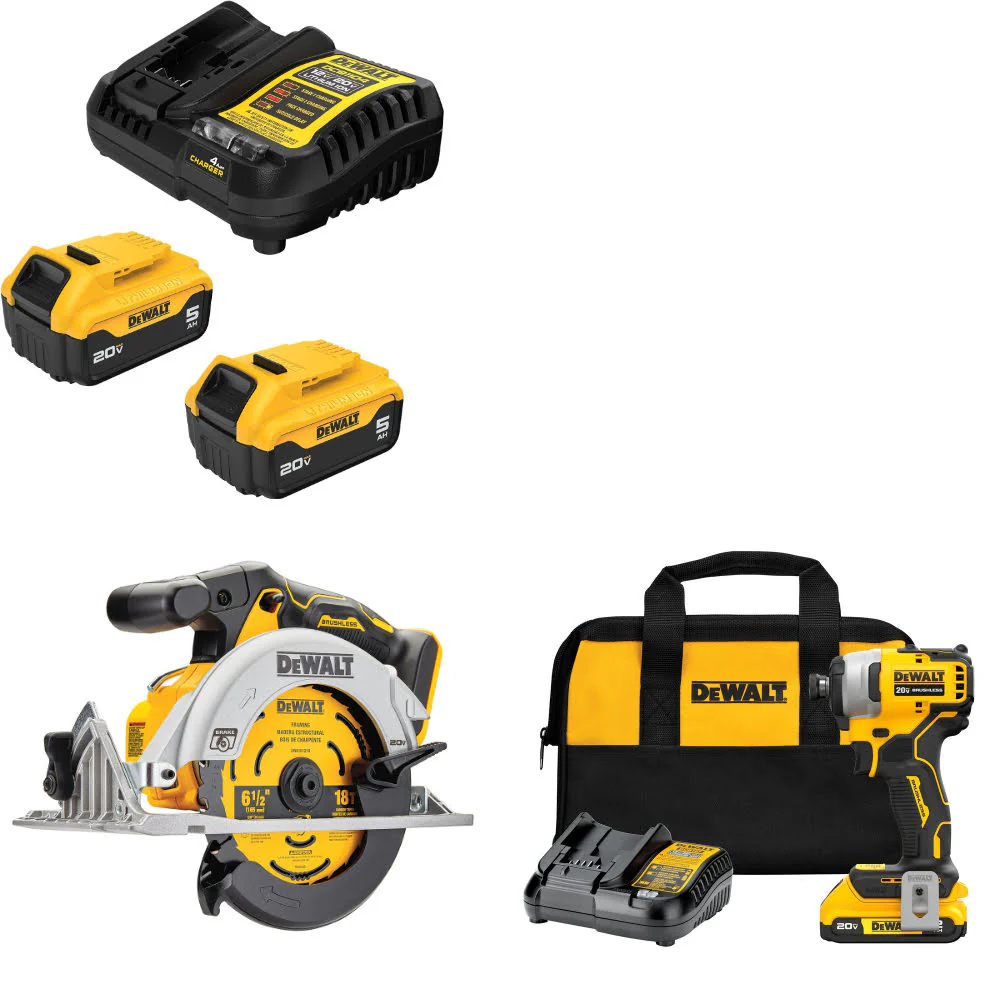 DeWalt DCB205-2C 20V MAX Starter Kit W/ DCS565B 20V Circ Saw & Impact Driver Kit