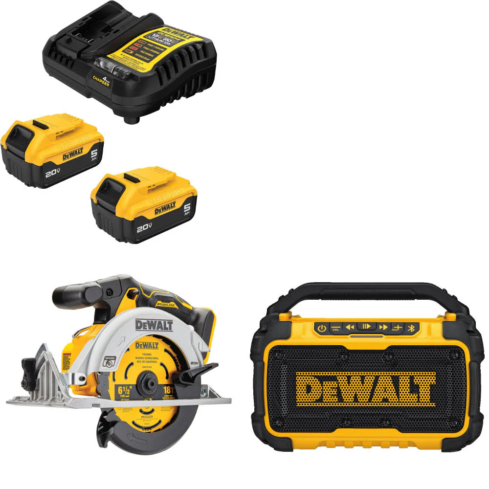 DeWalt DCB205-2C 20V MAX Starter Kit W/ DCS565B 20V Circ Saw & 12/20V Speaker