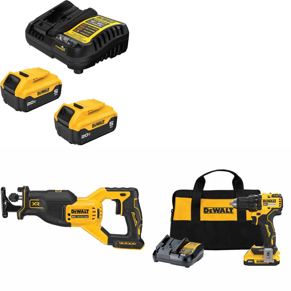DeWalt DCB205-2C 20V MAX Starter Kit W/ DCS382B 20V Recip Saw & Drill/Driver Kit
