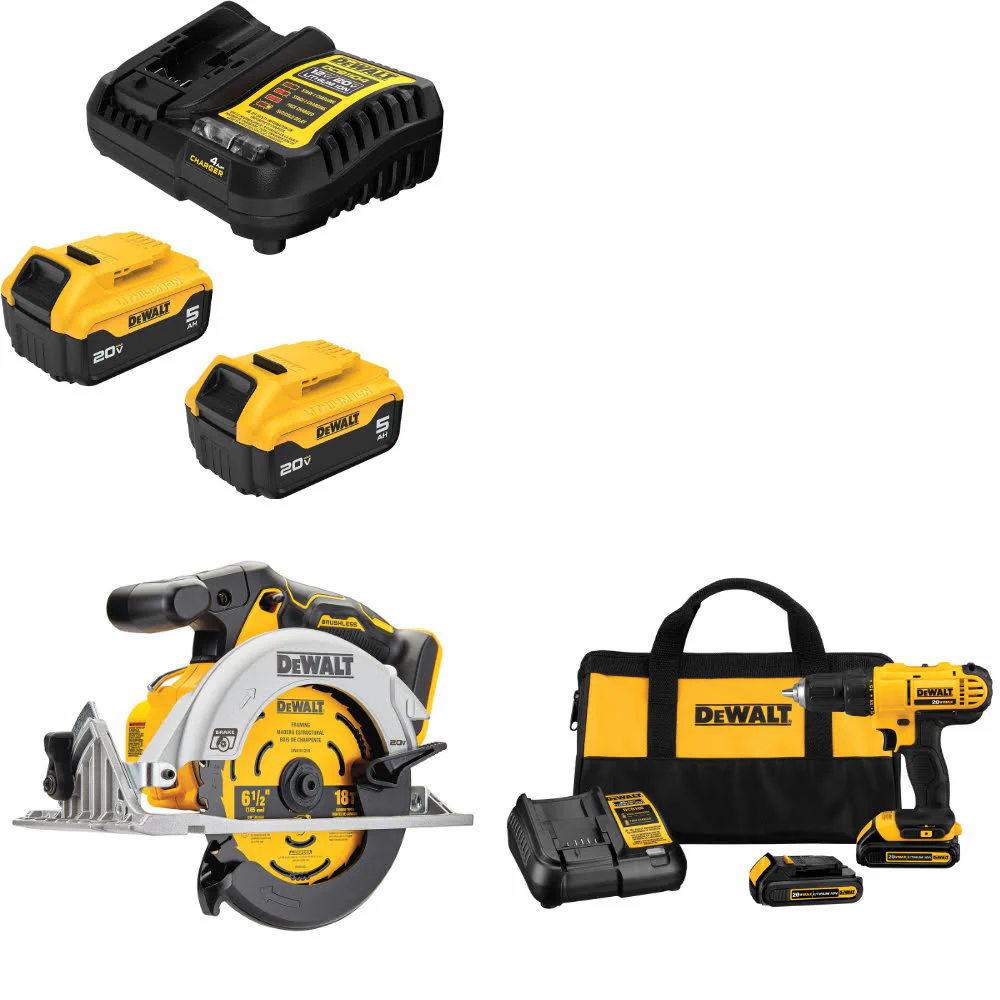 DeWalt DCB205-2C 20V MAX Starter Kit W/ DCS565B 20V Circ Saw & Drill/Driver Kit
