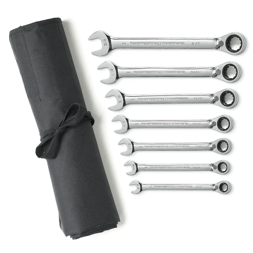 GearWrench 9567RN 7 Pc. 72-Tooth 12 Point Reversible Ratcheting Combination SAE Wrench Set with Tool Roll