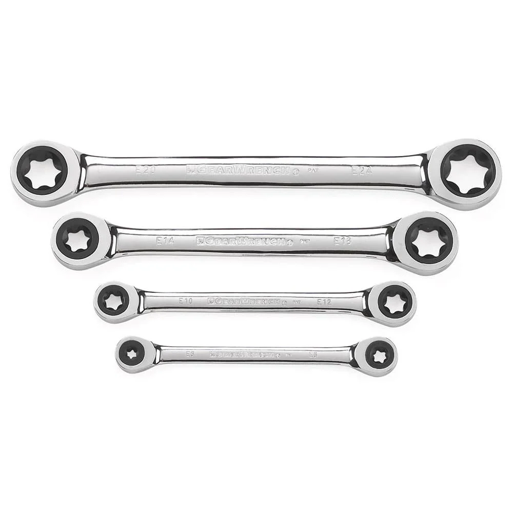 GearWrench 9240D 4 Pc. 72-Tooth 12 Point Double Box Ratcheting SAE Wrench Set