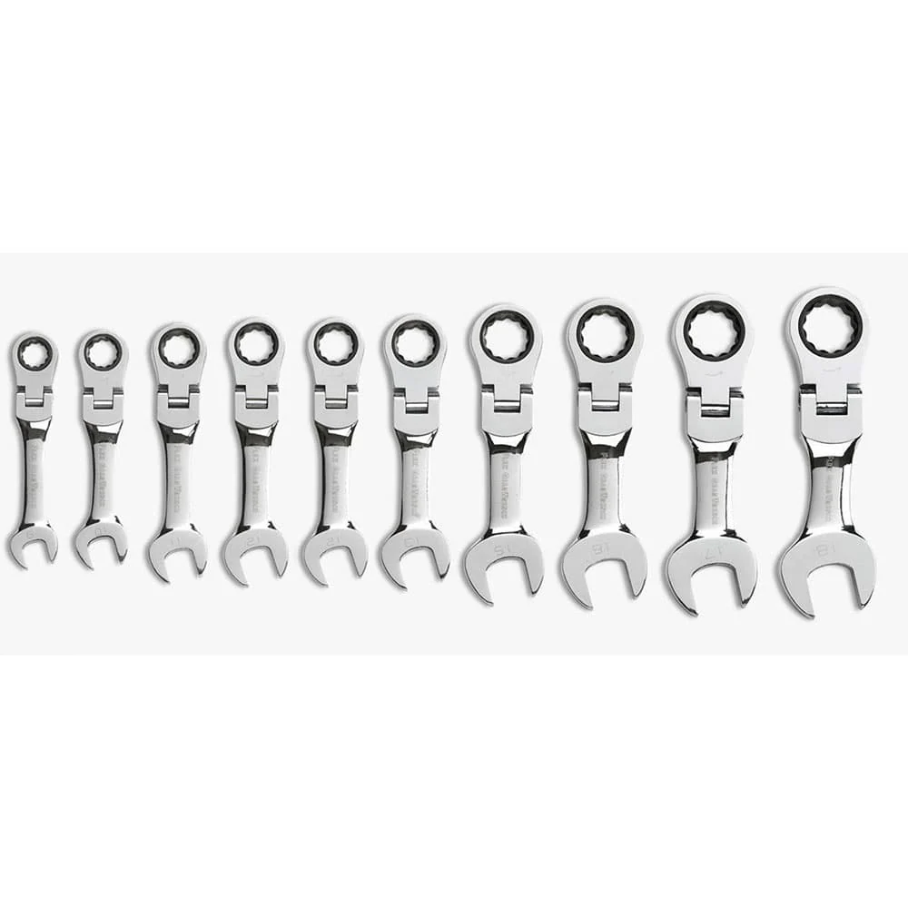 GearWrench 9550 10 Pc. 72-Tooth 12 Point Stubby Flex Head Ratcheting Combination Metric Wrench Set