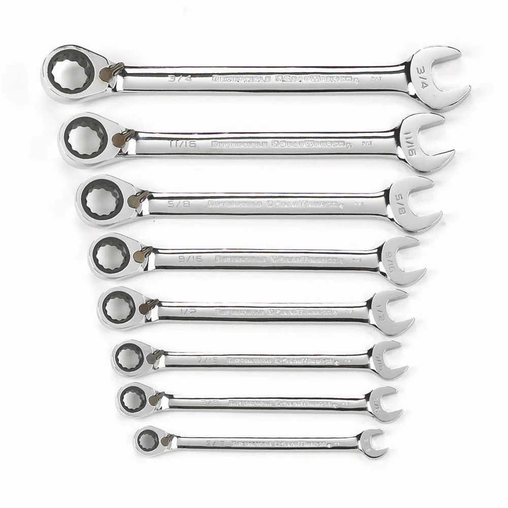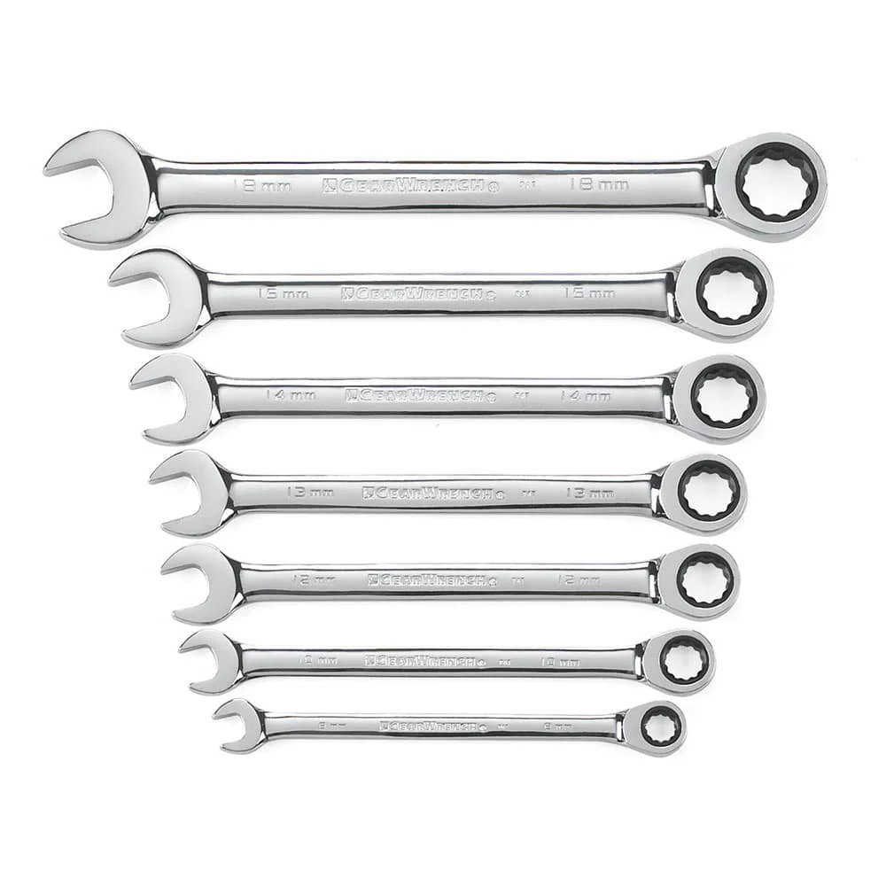 GearWrench 9543 8 Pc. 72-Tooth 12 Point Reversible Ratcheting Combination Metric Wrench Set