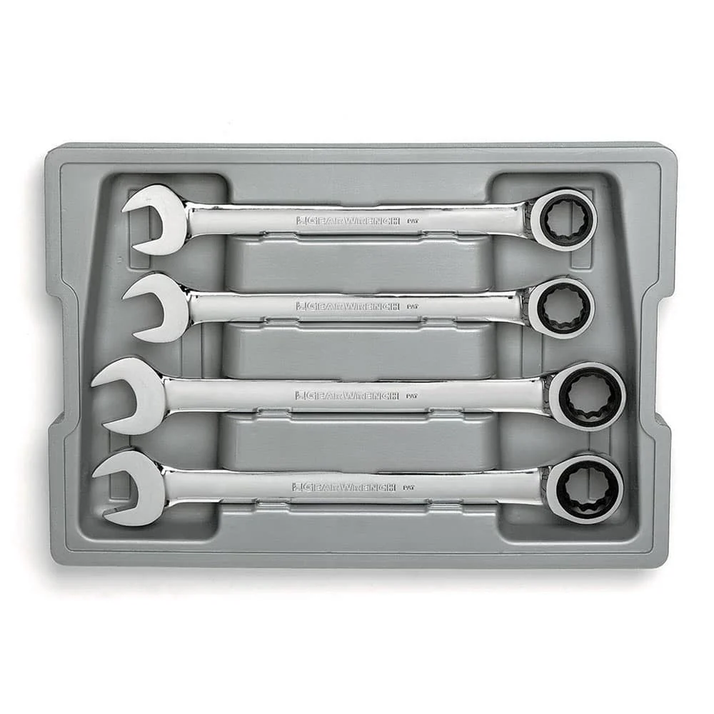 GearWrench 9413 4 Pc. 72-Tooth 12 Point Ratcheting Combination Metric Wrench Set with Tray