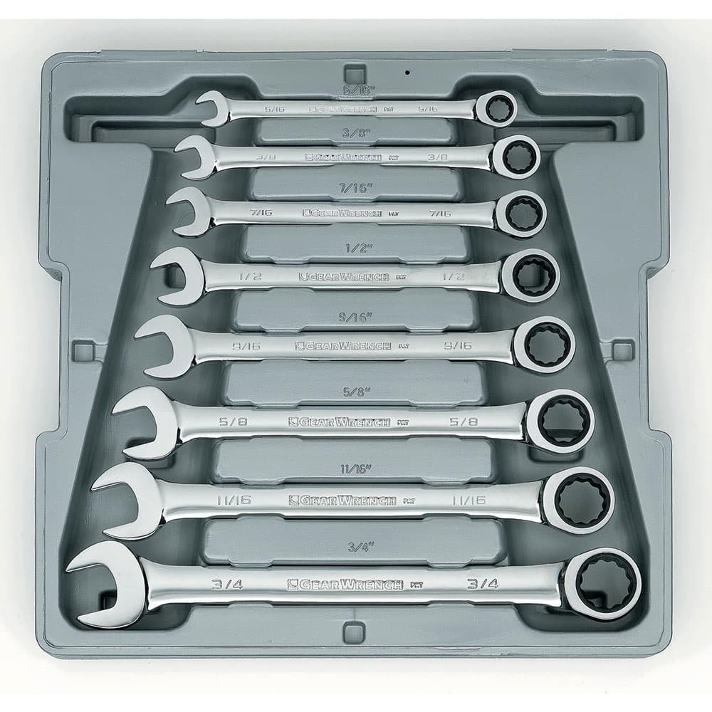 GearWrench 9308D 8 Pc. 72-Tooth 12 Point Ratcheting Combination SAE Wrench Set