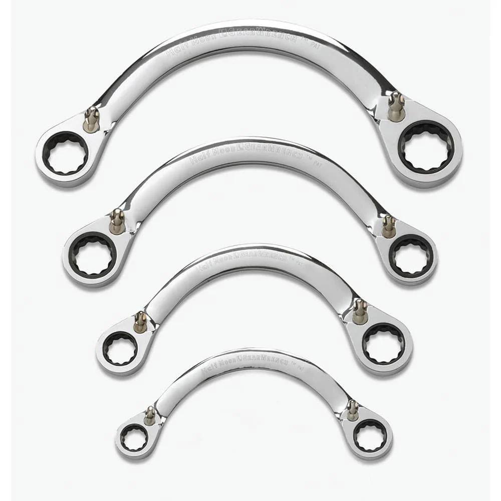 GearWrench 9840D 4 Pc. 72-Tooth 12 Point Reversible Half Moon Double Box Ratcheting SAE Wrench Set