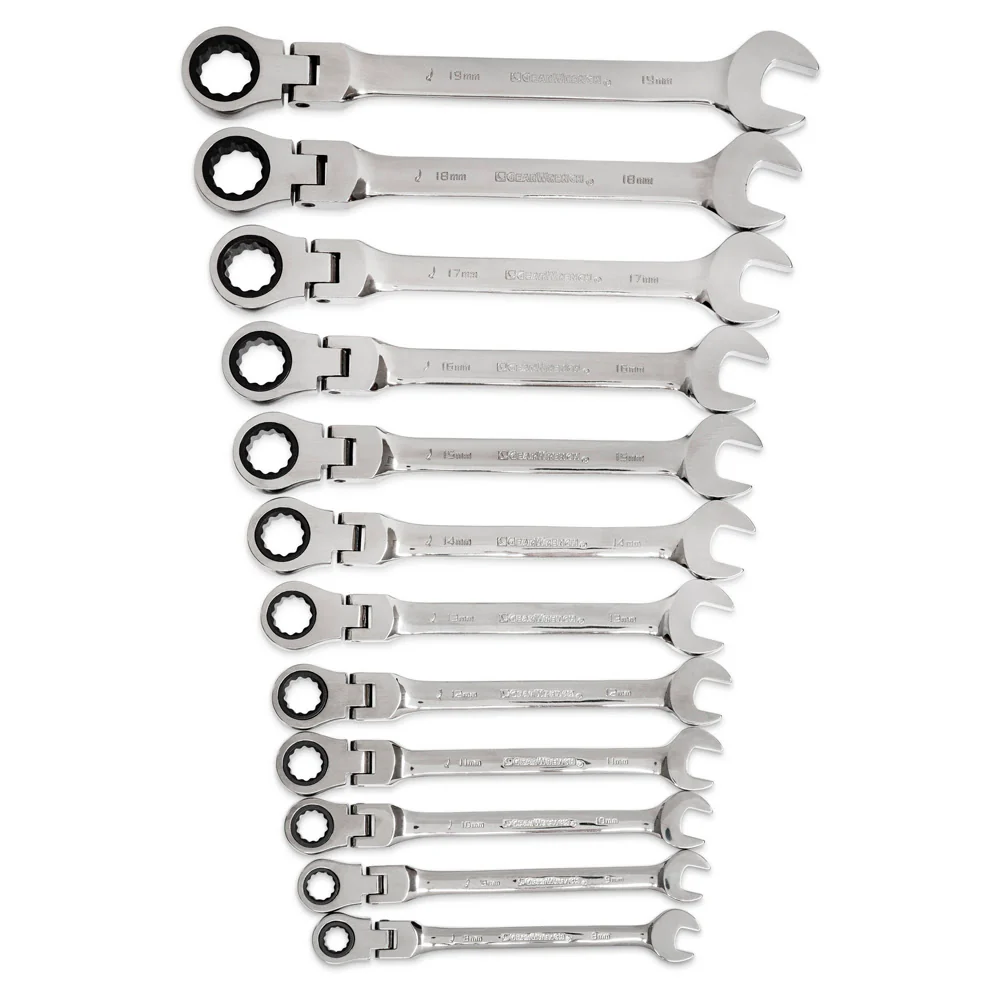 GearWrench 9901D 12 Pc. 72-Tooth 12 Point Flex Head Ratcheting Combination Metric Wrench Set