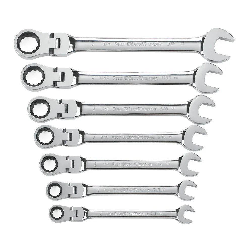 GearWrench 9903D 4 Piece 12 Point Flex Head Ratcheting Combination Metric Wrench Completer Set