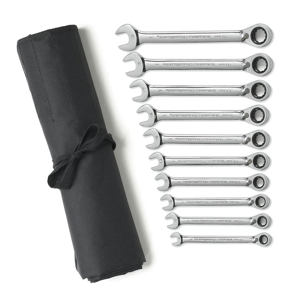 GearWrench 9601RN 10 Pc. 72-Tooth 12 Point Reversible Ratcheting Combination Metric Wrench Set with Tool Roll
