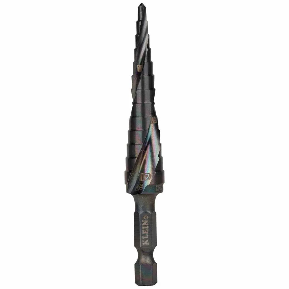 Klein Tools QRST01 Step Drill Bit, Quick Release, Spiral Flute, 1/8 to 1/2-Inch