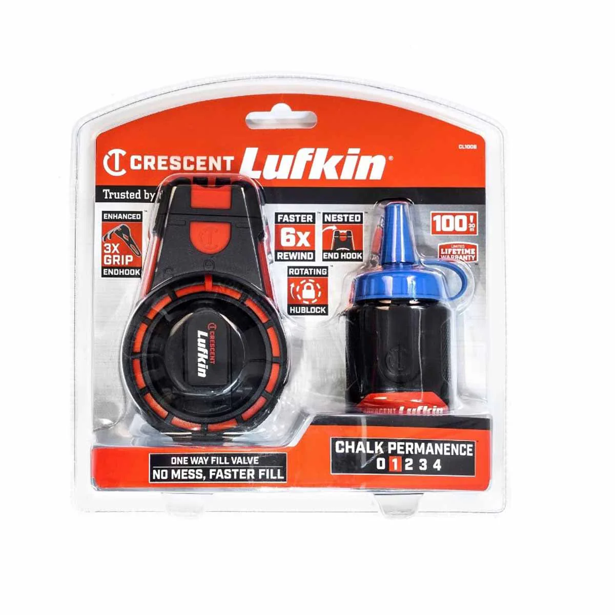Crescent Lufkin CLA100R 100' Professional Aluminum Chalk & Reel with Red Chalk