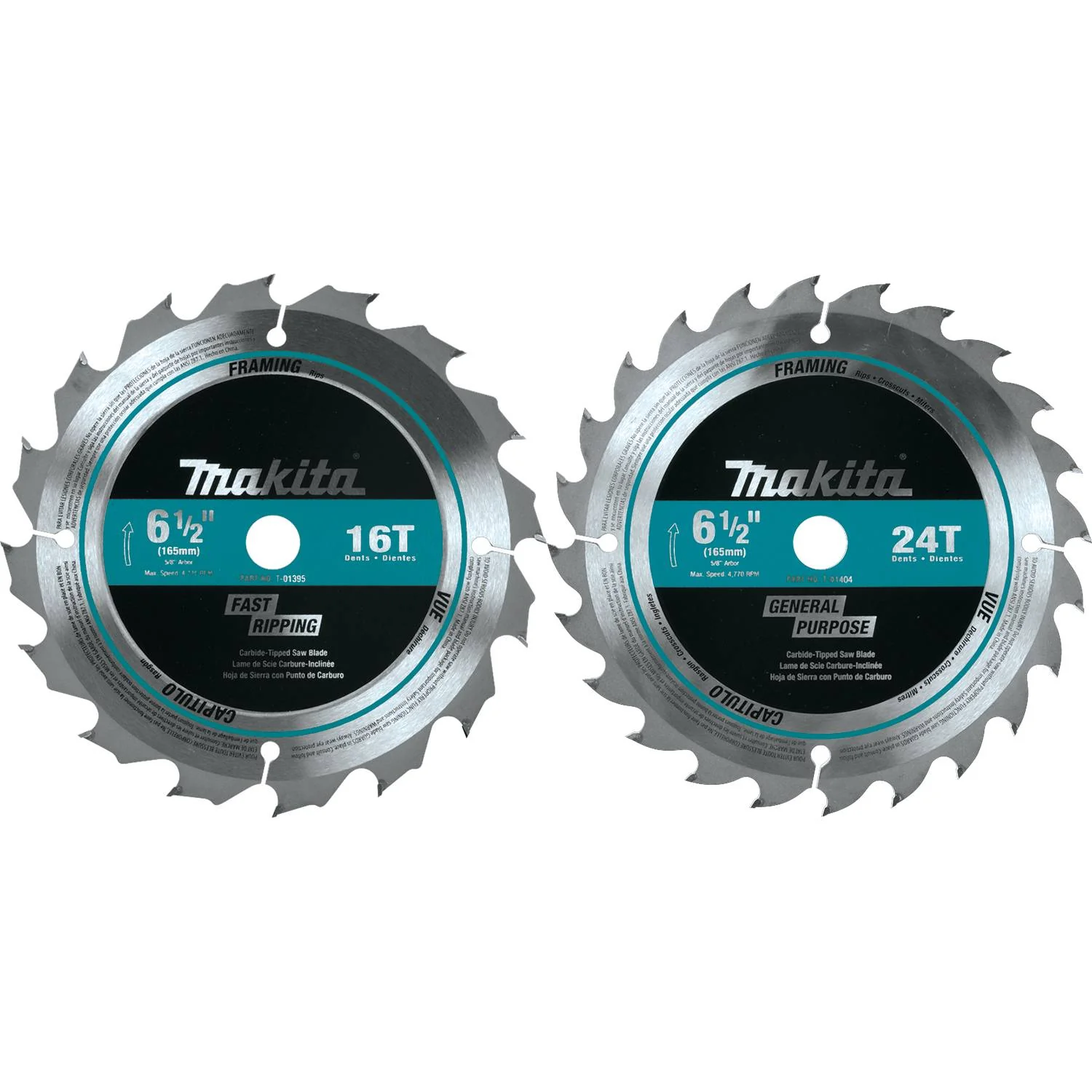 Makita T-01410 6-1/2" 40T Carbide-Tipped Circular Saw Blade, Fine Crosscut
