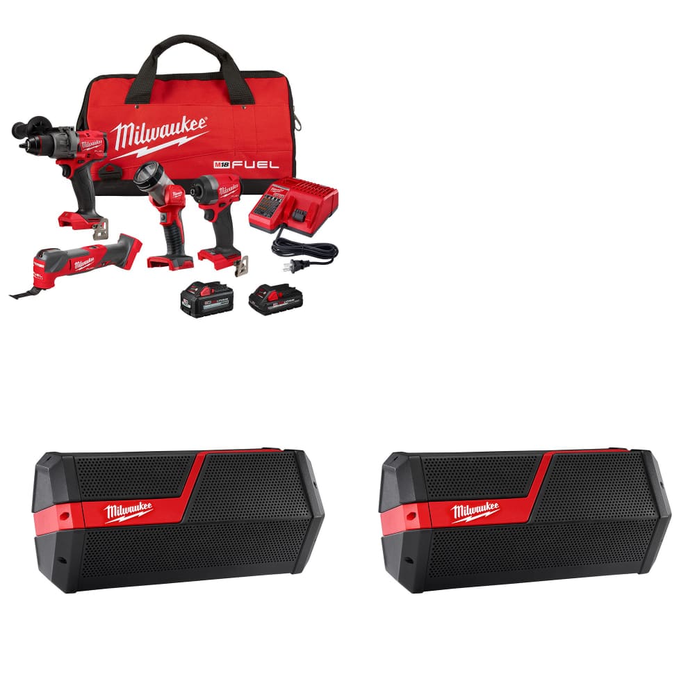 Milwaukee 3698-24MT M18 4-Tool Combo Kit W/ FREE 2891-20 M18/M12 Speaker, 2-Pack