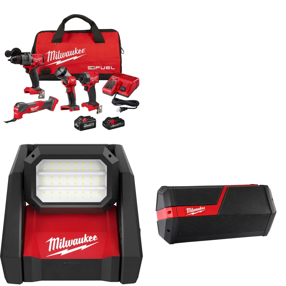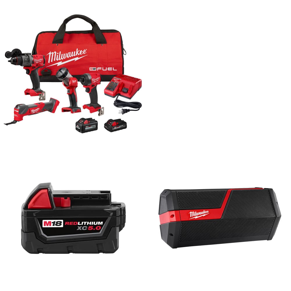 Milwaukee 3698-24MT M18 4-Tool Combo Kit W/ FREE 48-11-1850 Battery & Speaker