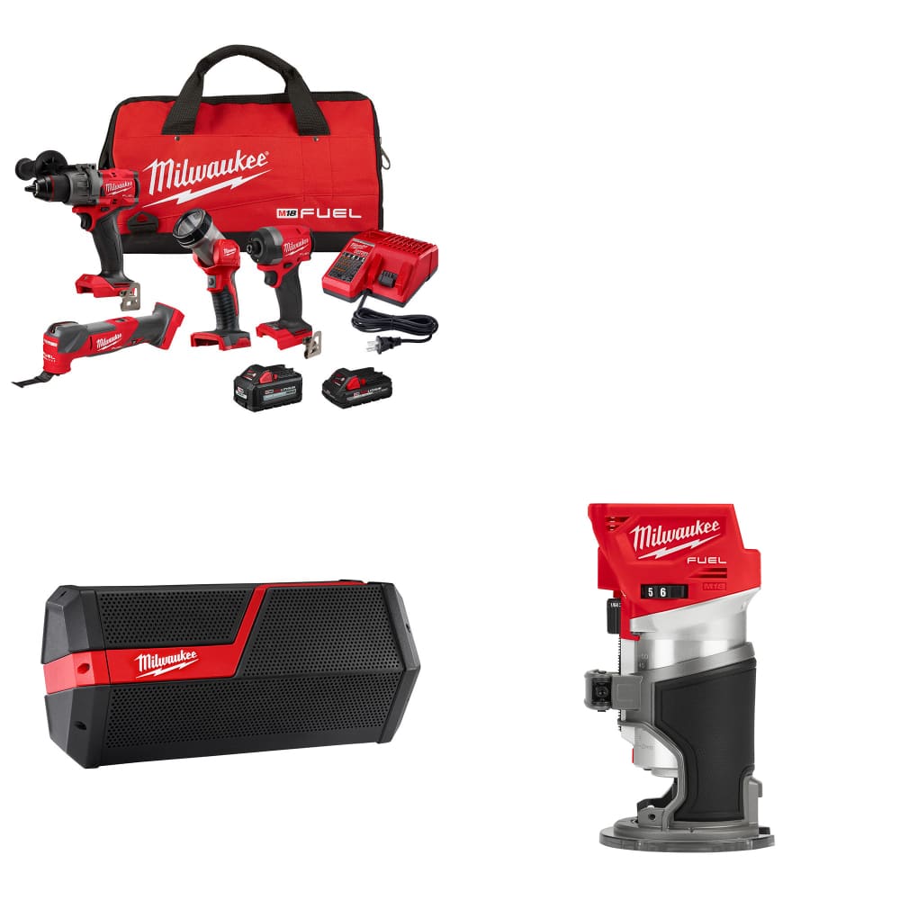 Milwaukee 3698-24MT M18 4-Tool Combo Kit W/ FREE 2891-20 Speaker & Router, Bare
