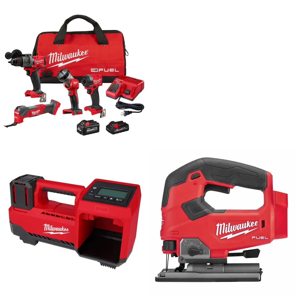 Milwaukee 3698-24MT M18 4-Tool Combo Kit W/ FREE 2848-20 M18 Inflator & Jig Saw