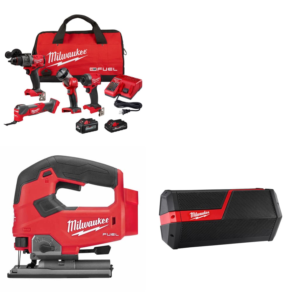 Milwaukee 3698-24MT M18 4-Tool Combo Kit W/ FREE 2737-20 M18 Jig Saw & Speaker