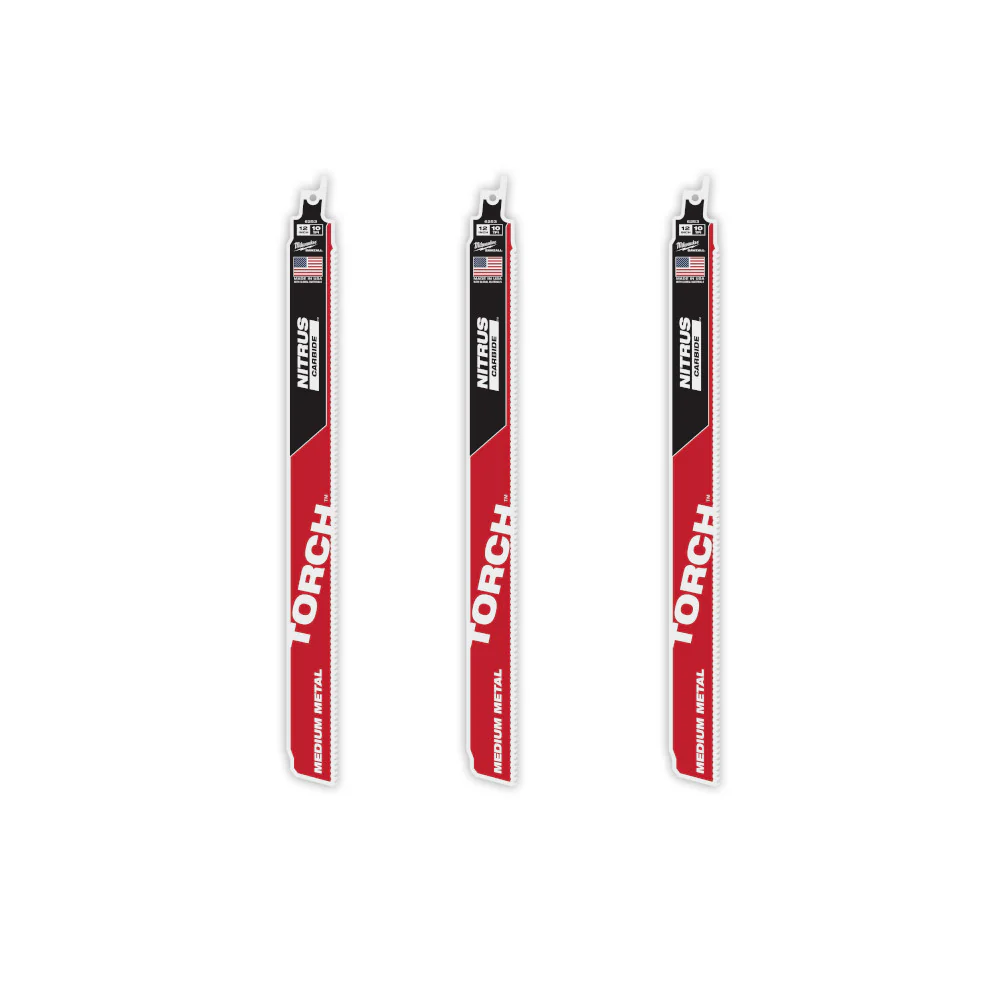 Milwaukee 48-00-6353 12" Reciprocating Saw Blade 10TPI The TORCH with NITRUS CARBIDE Teeth for Medium Metal 3PK