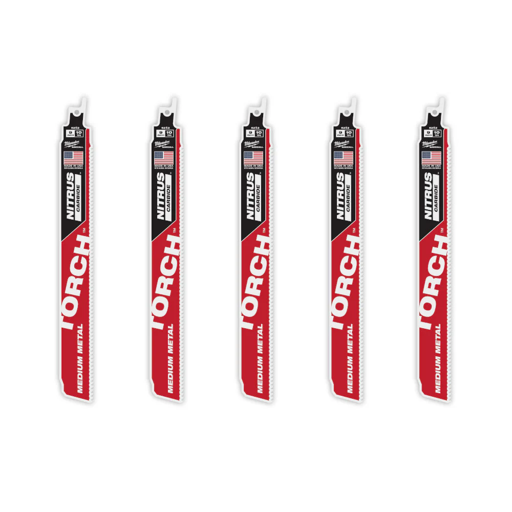 Milwaukee 48-00-6552 9" Reciprocating Saw Blade 10TPI The TORCH with NITRUS CARBIDE Teeth for Medium Metal 5PK