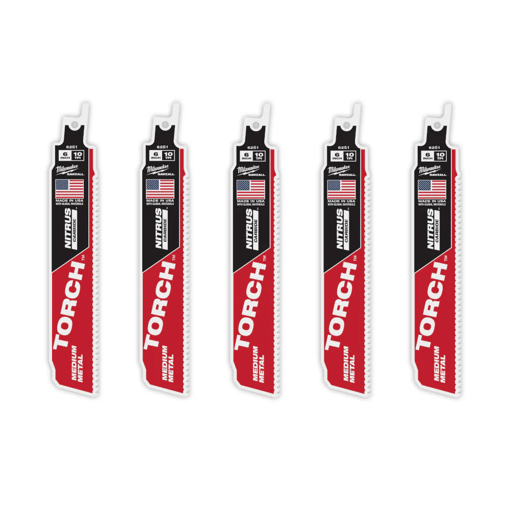 Milwaukee 48-00-6551 6" Reciprocating Saw Blade 10TPI The TORCH with NITRUS CARBIDE Teeth for Medium Metal 5PK