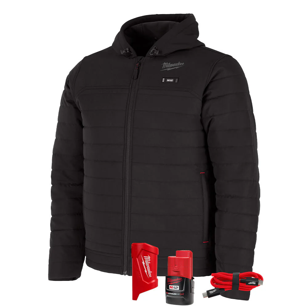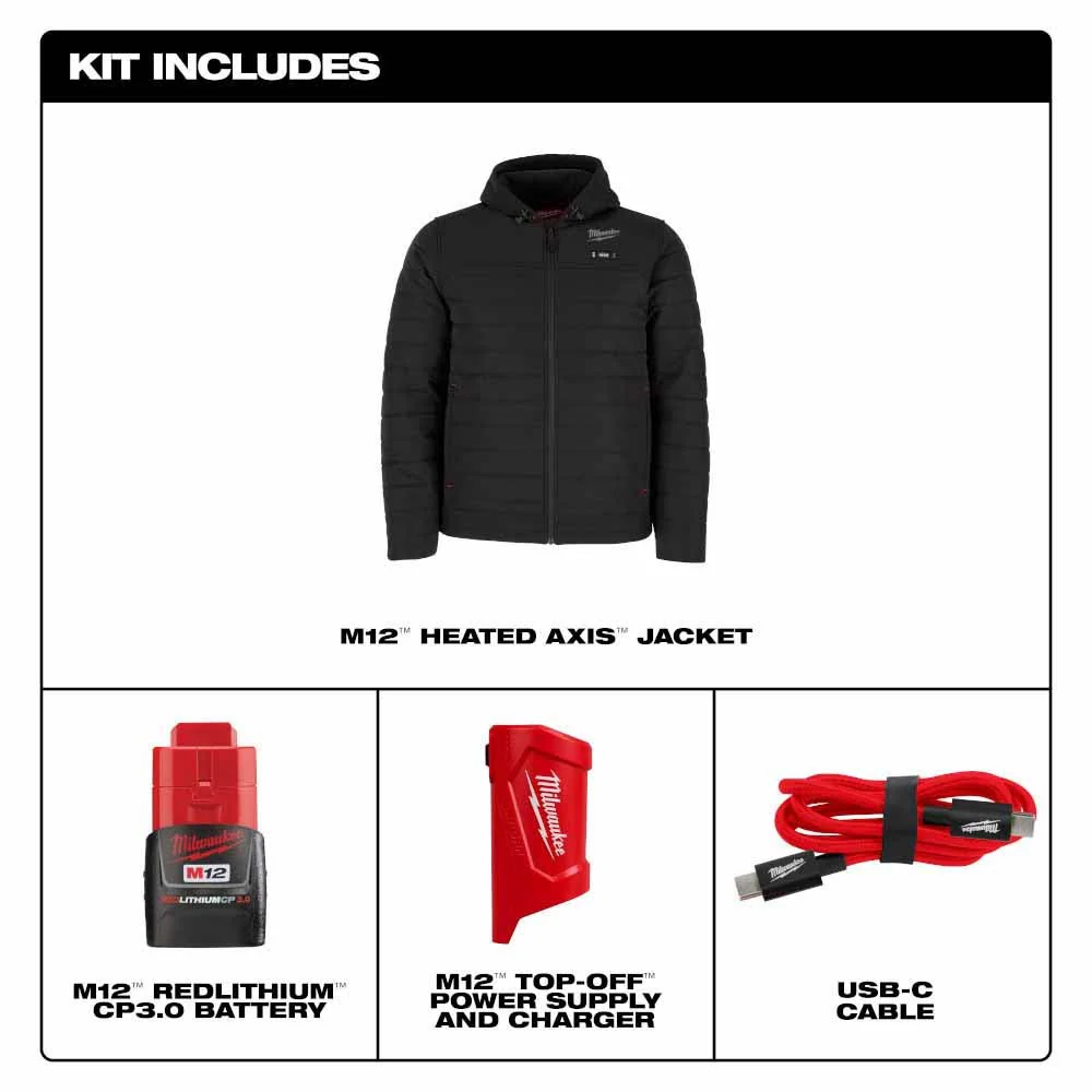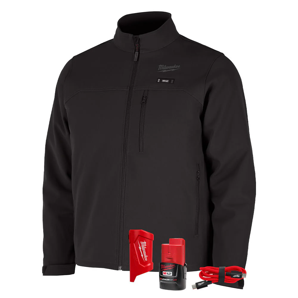 Milwaukee M102B-21 M12 Heated Black Axis Jacket with (1) 3.0 Ah Battery and Charger