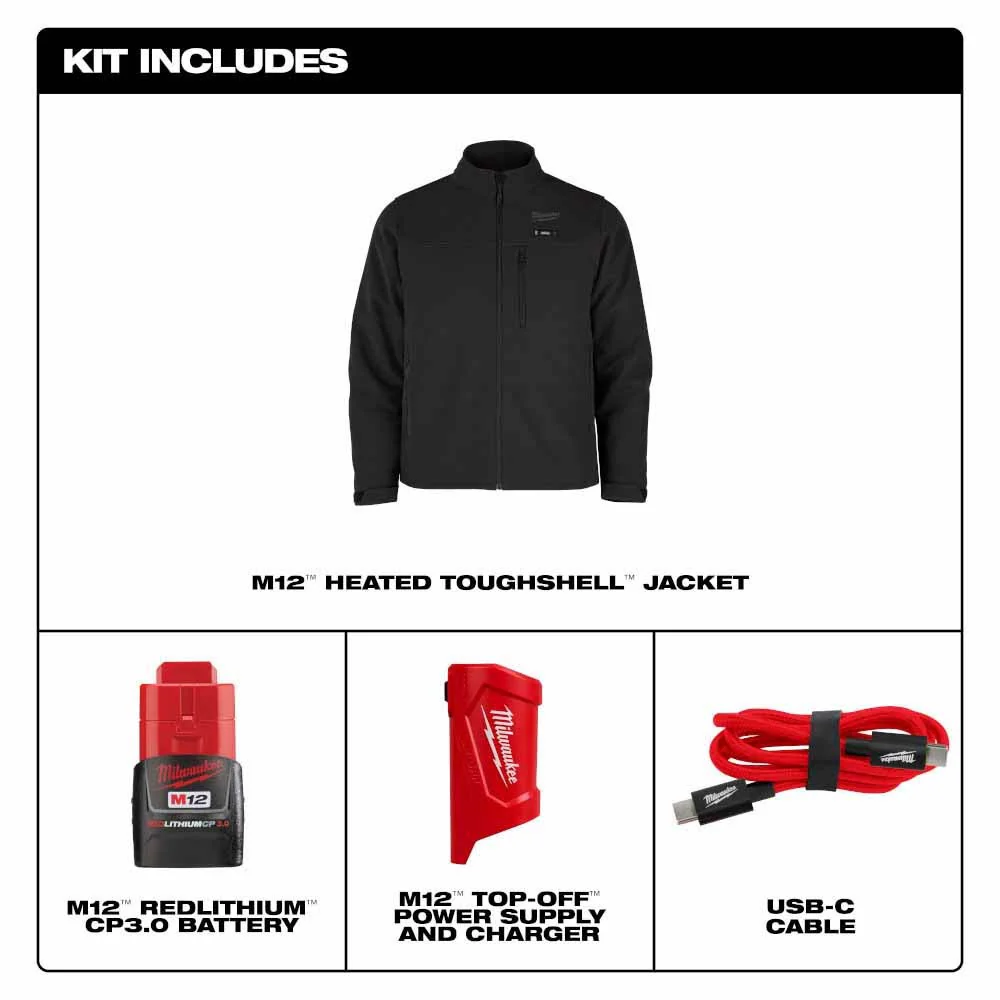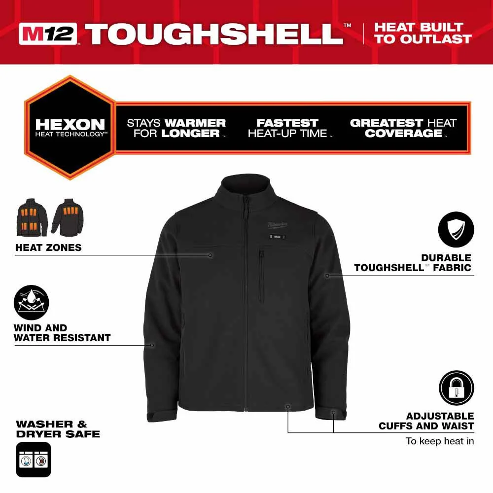 Milwaukee M100B-21 M12 Heated Black Toughshell Jacket with (1) 3.0 Ah Battery and Charger
