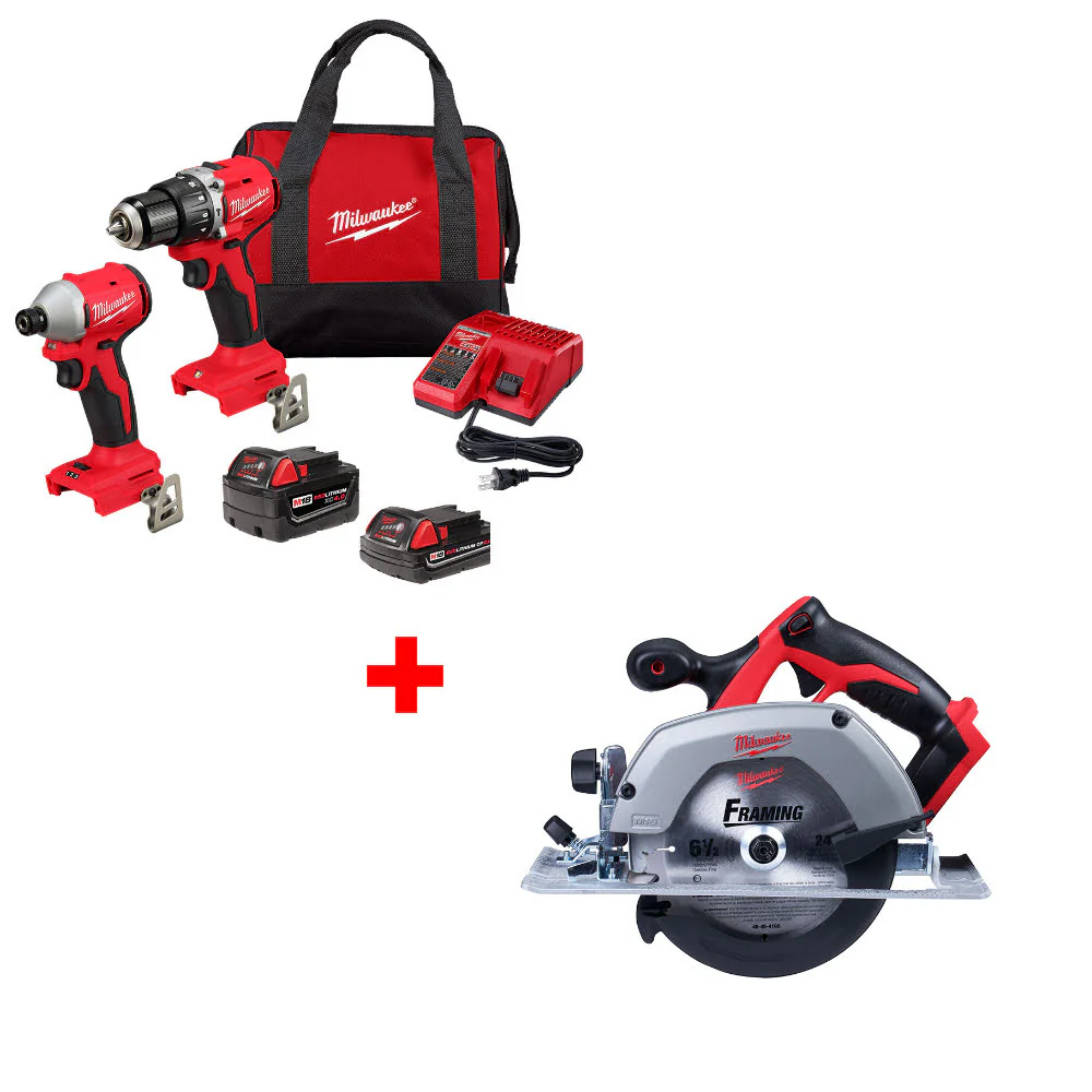 Milwaukee 3693-22CX M18 2-Tool Combo Kit W/ FREE 2630-20 M18 Li-Ion 18V Circ Saw