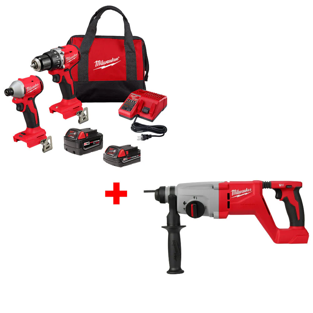 Milwaukee 3693-22CX M18 2-Tool Combo Kit W/ FREE 2613-20 M18 1" Rotary Hammer