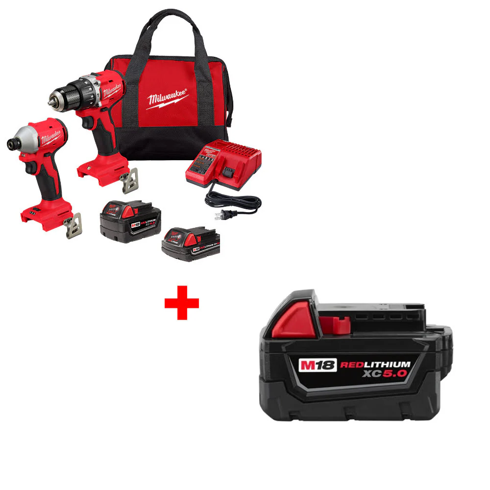 Milwaukee 3693-22CX M18 2-Tool Combo Kit W/ FREE 48-11-1850 M18 Battery Pack