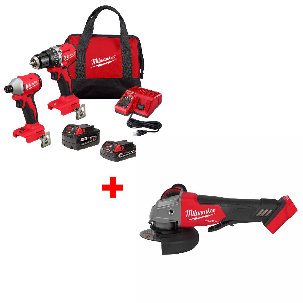 Milwaukee 3693-22CX M18 2-Tool Combo Kit W/ FREE 2880-20 M18 FUEL Grinder, Bare