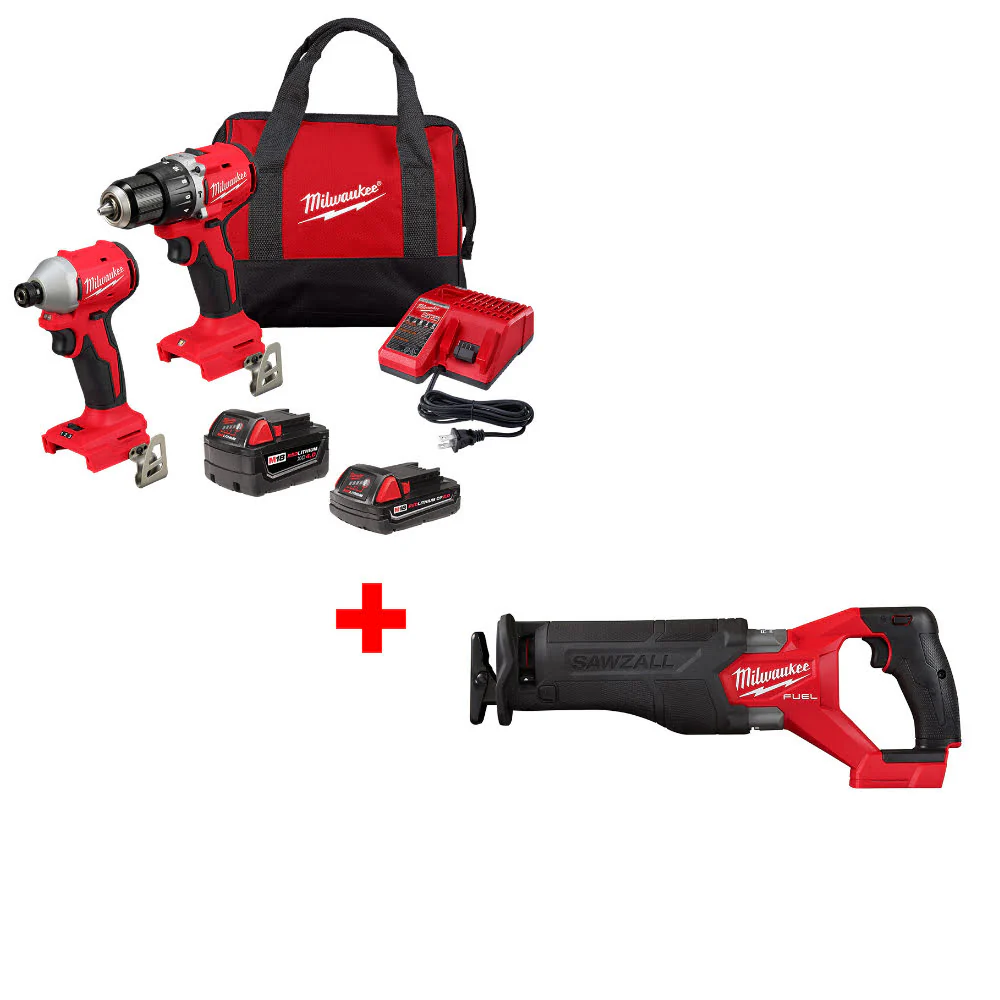 Milwaukee 3693-22CX M18 2-Tool Combo Kit W/ FREE 2821-20 M18 FUEL™ Recip Saw