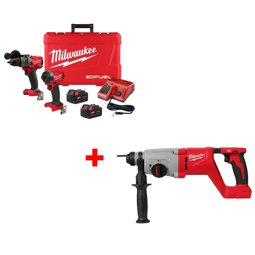 Milwaukee 3697-22 M18 FUEL 2-Tool Combo Kit W/ FREE 2613-20 M18 1" Rotary Hammer