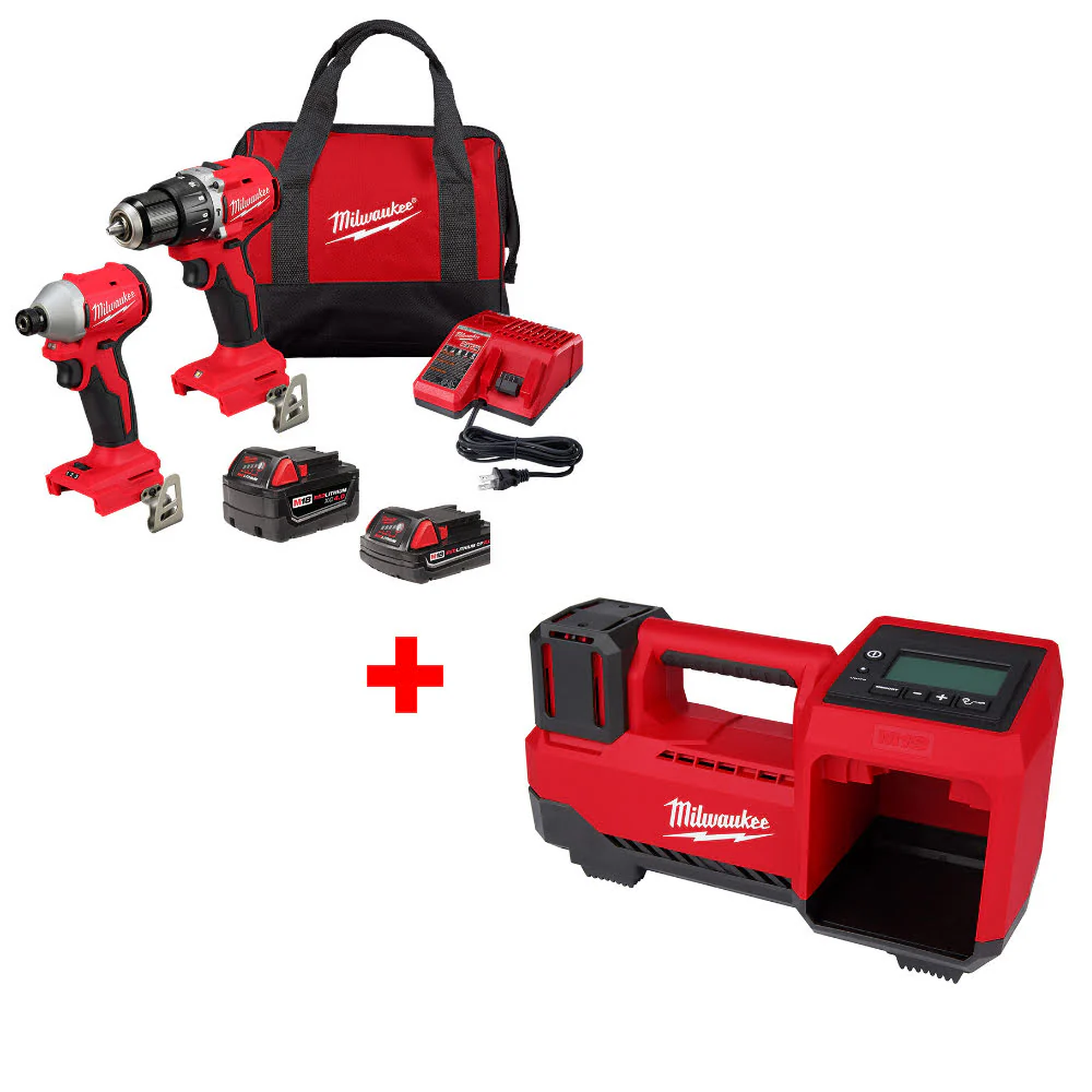Milwaukee 3693-22CX M18 2-Tool Combo Kit W/ FREE 2848-20 M18 Tire Inflator, Bare