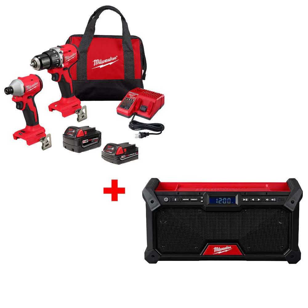 Milwaukee 3693-22CX M18 2-Tool Combo Kit W/ FREE 2952-20 M18 Jobsite Radio