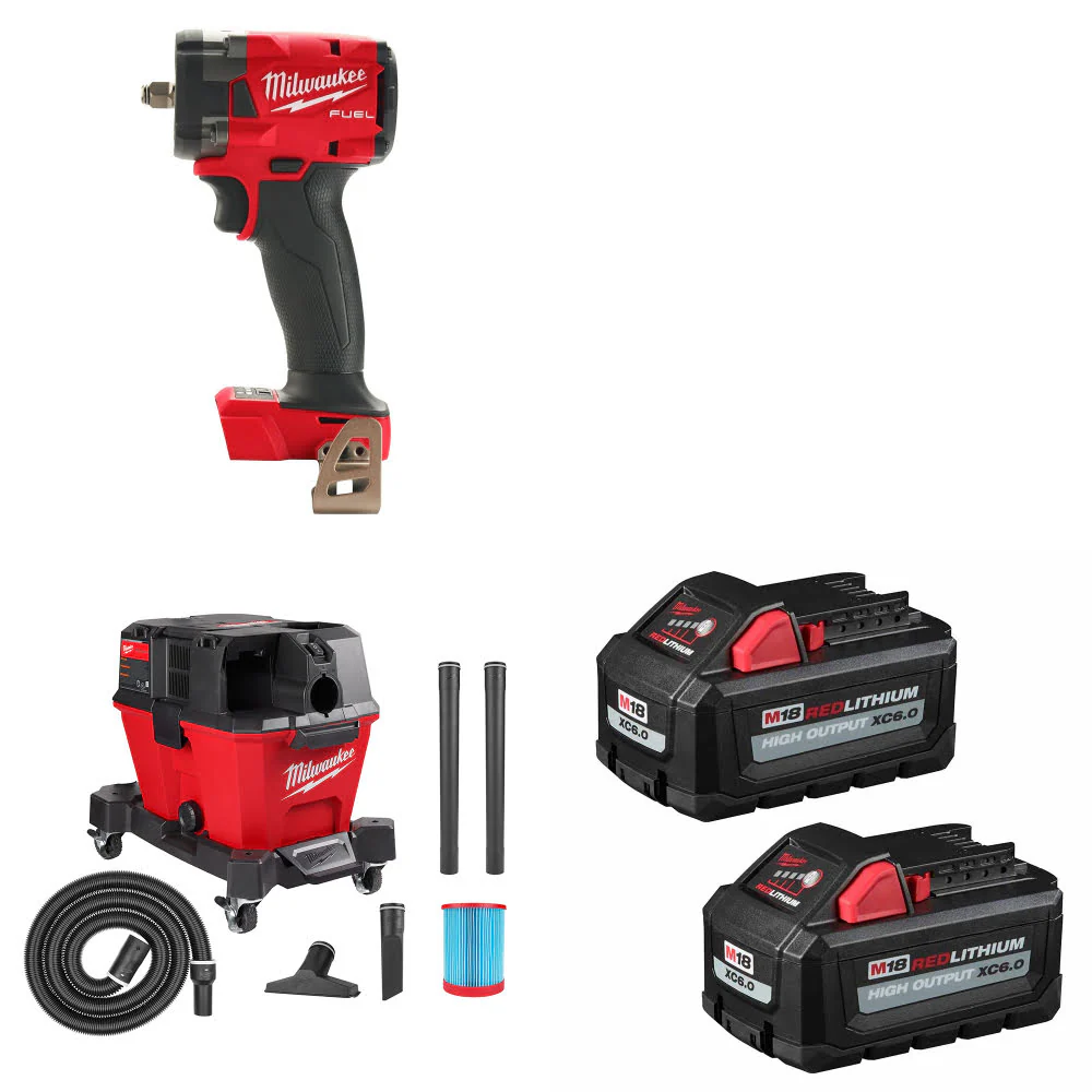 Milwaukee 2854-20 M18 Impact Wrench W/ 0910-20 M18 Vacuum & FREE Battery 2 Pack