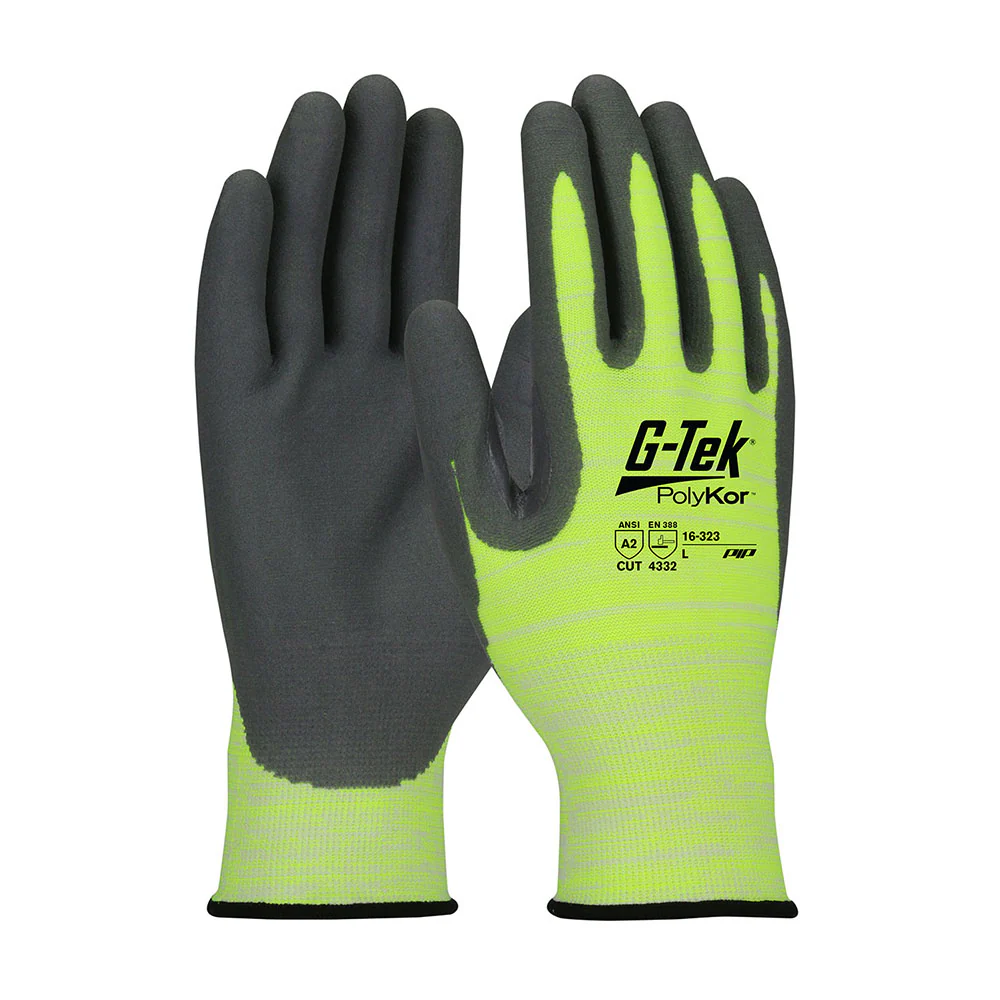 PIP Industrial Products 16-323/L G-Tek Polykor Hi-Vis Glove, 15 Gauge, Size Large